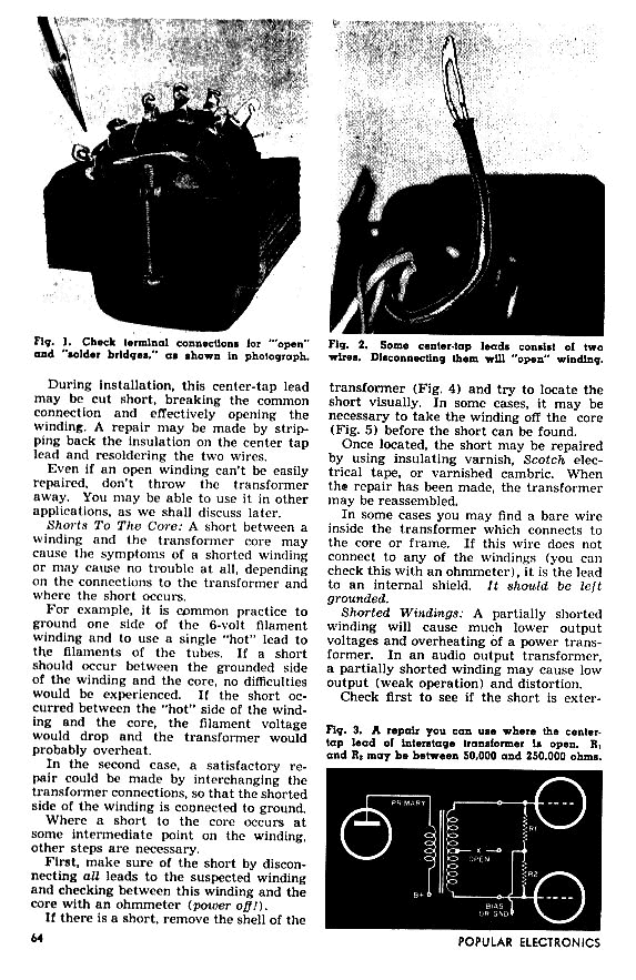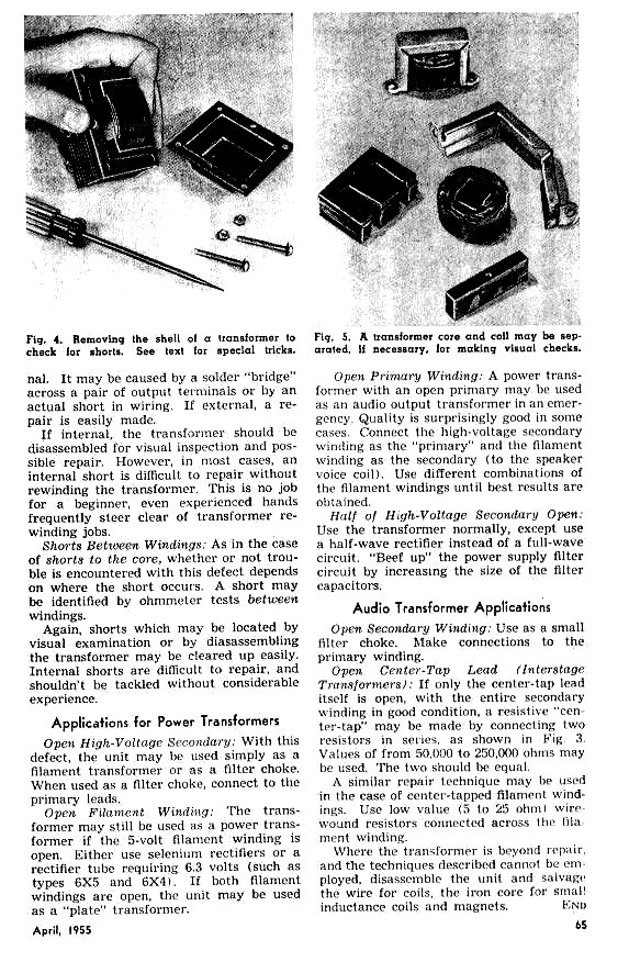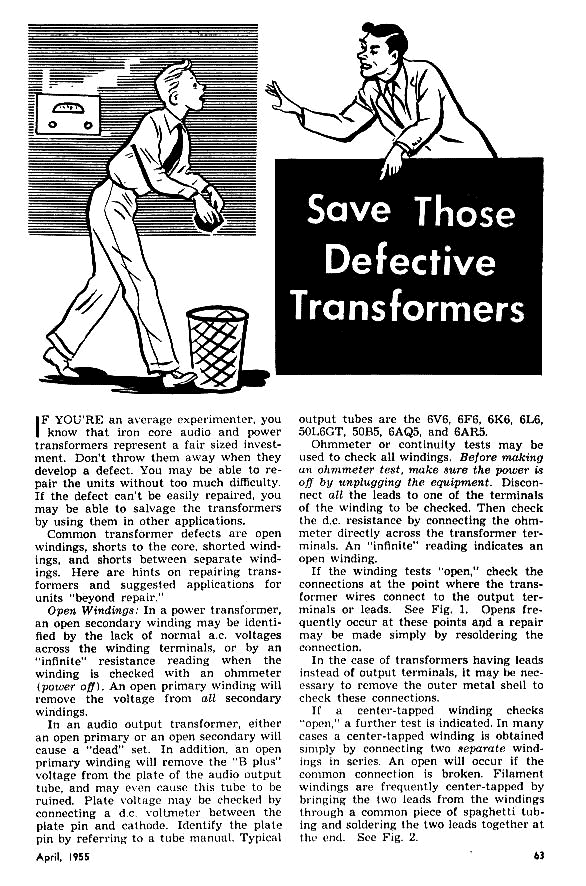 Most every old-timer will reminisce about ‘The Good Ol’ Days’ when the War years left many an electronic experimenter scrambling for circuit components to tinker with. Even mica (used as an insulator in capacitors) became unavailable during these times, leading to the development of ceramic disc capacitors. When transformers became scarce, the astute and frugal electronics man found ways to use working sections of ‘dead’ transformers. In fact, impedance coupling was ‘invented’ to make use of standard issue 1:3 coupling transformers with an open primary! I don’t recommend any of these ideas, as they are not very efficient, and replacement transformers are plentiful and cheap today. However, this is a good look at how clever someone could be when money was scarce or components unavailable at any price.